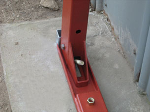 보강대가 있는 쪽으로 향하여 매립 앙카볼트에 삽입한다.