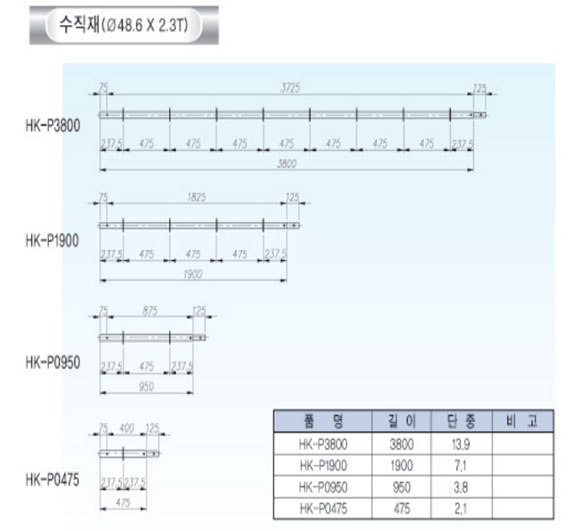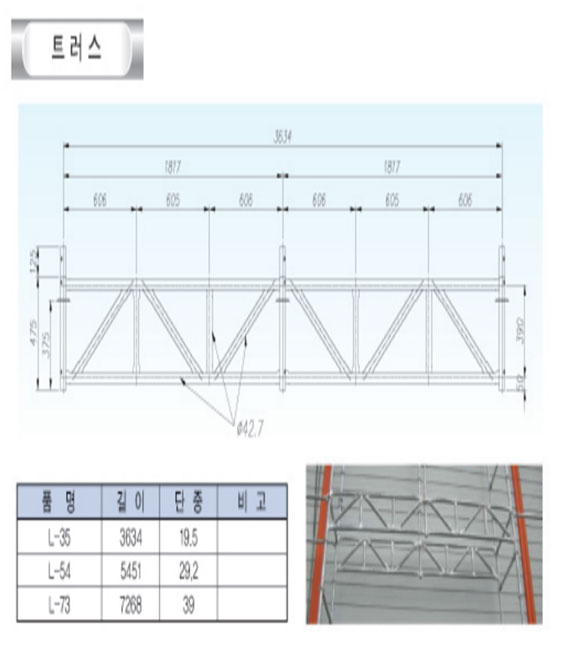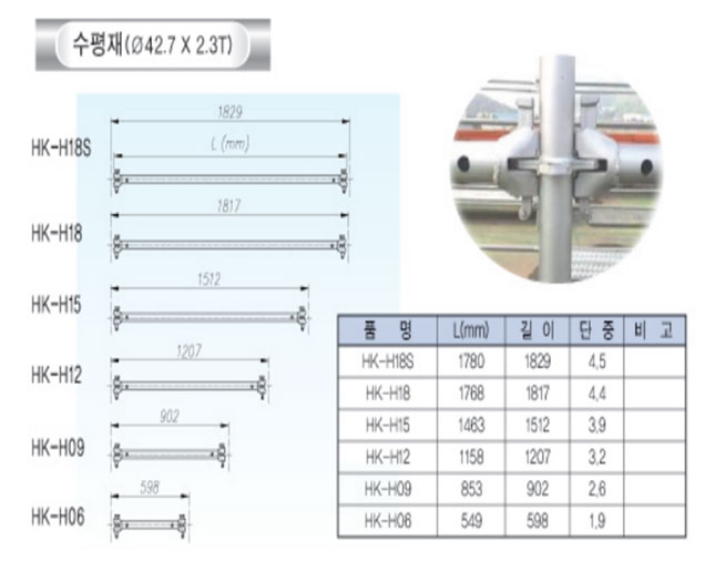 타사 제품 및 당사 중하중용 수평재와 호환이 가능하여 자재 수급이 원활
